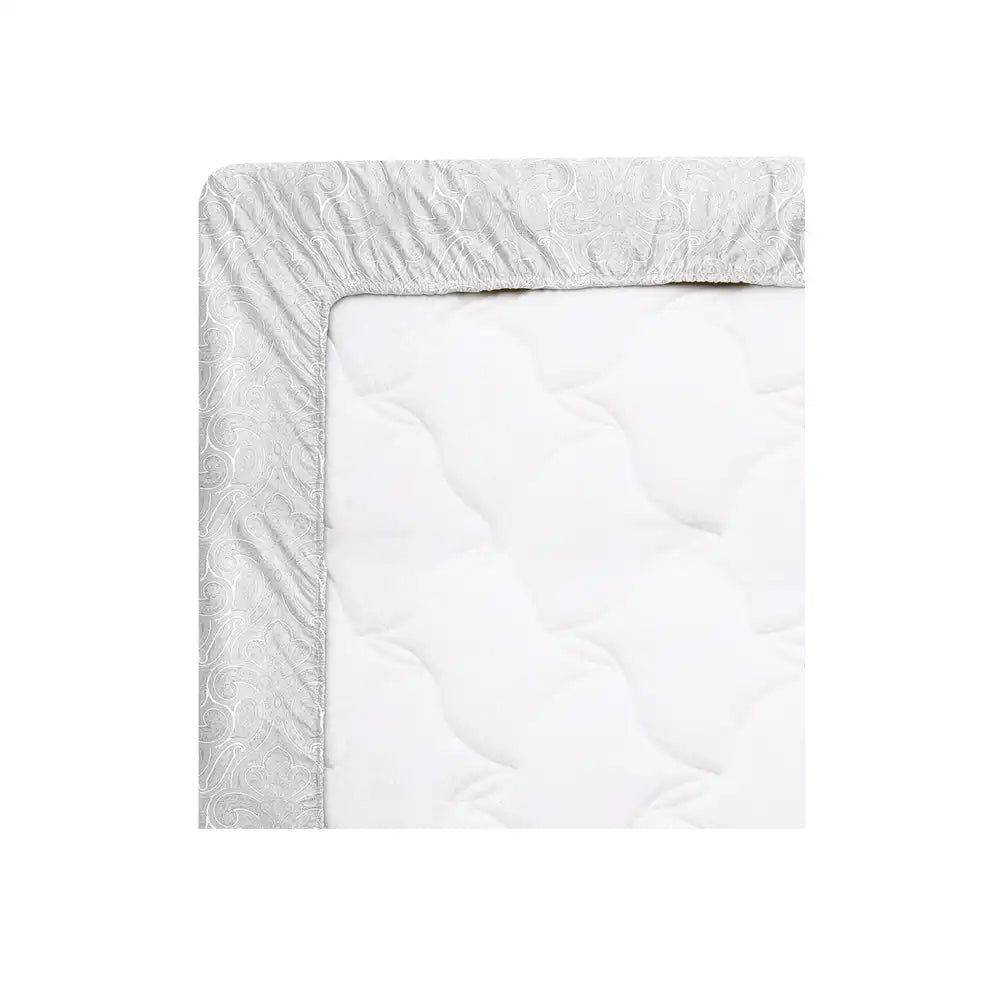 Experience unparalleled comfort and enhance your hotel, restaurant, or catering business with our Elysian Grey Paisley Design Jacquard Cotton Fitted Sheet. Specifically designed to fit super king mattresses snugly, its 300 thread count offers a blend of luxury and durability, ensuring a restful night for your guests. Its elegant paisley pattern adds a touch of sophistication to any room décor.