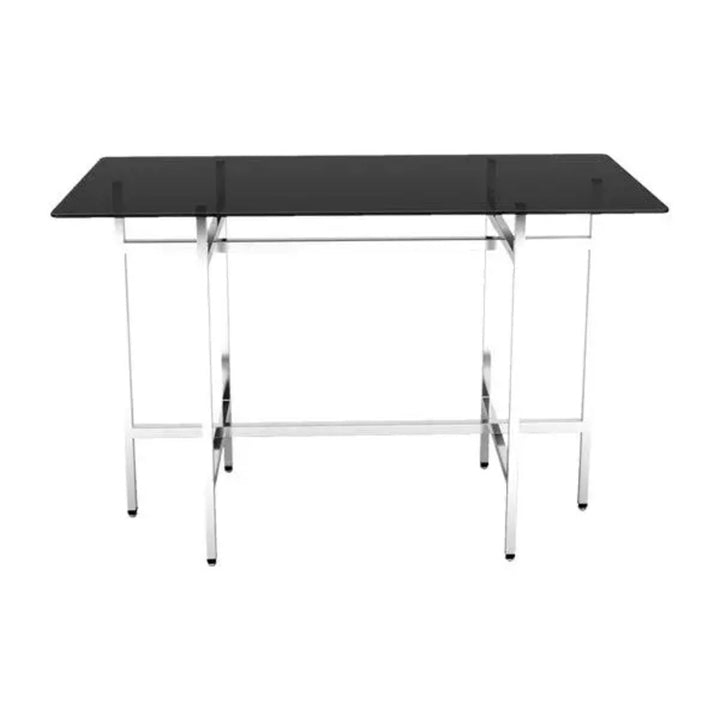 VM75 حامل بوفيه مستطيل قابل للطي L 180 x W 70 x H 75 سم، إطارات قابلة للطي من الفولاذ المقاوم للصدأ وسطح زجاجي مقسى قابل للفصل 10 مم