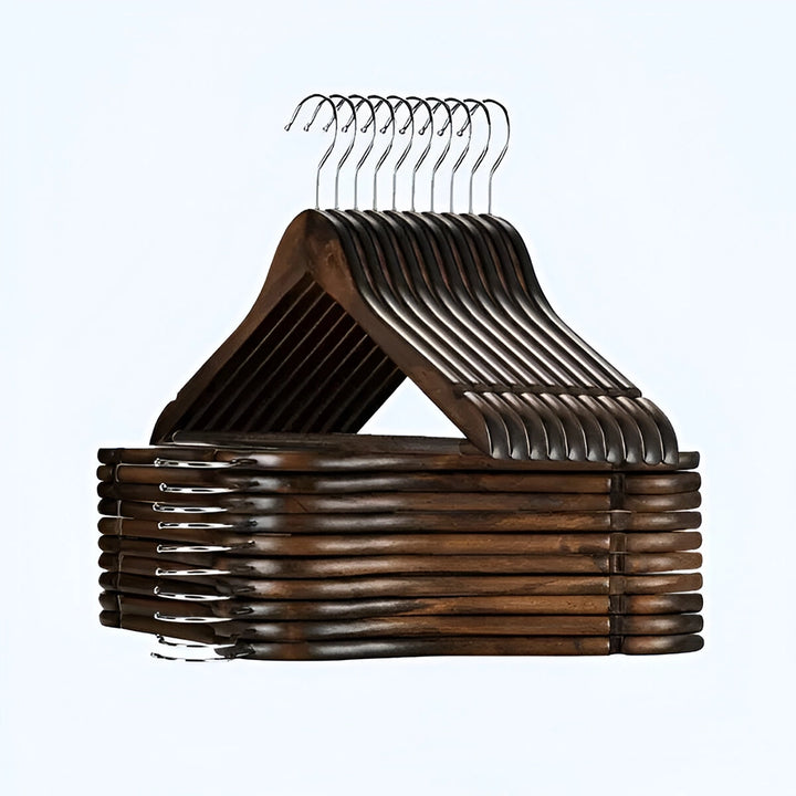 Discover the pinnacle of wardrobe management with the Roomwell UK Mahogany Wooden Hanger, tailor-made for the discerning professional. Crafted for durability, its anti-rust chrome 360-degree swivel hook ensures effortless access to your garments. With a robust 2cm shoulder width, it's designed to maintain the shape of your attire. The meticulously engineered notches accommodate a variety of garments, facilitating a flawless presentation. The integration of a non-slip round bar serves to secure pants in place, reinforcing the hanger's versatility. Its dimensions, 44.5cm in length, 1.2cm in width, and 22cm in height, exemplify a perfect balance between sleek design and functional prowess. This hanger is an indispensable asset for hotels, restaurants, and caterers aiming to exhibit impeccable taste and professionalism.