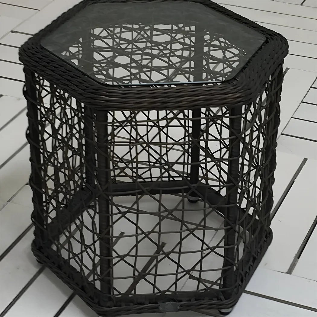 • Powder coated aluminum frame covered in Synthetic Rattan with tempered glass on top