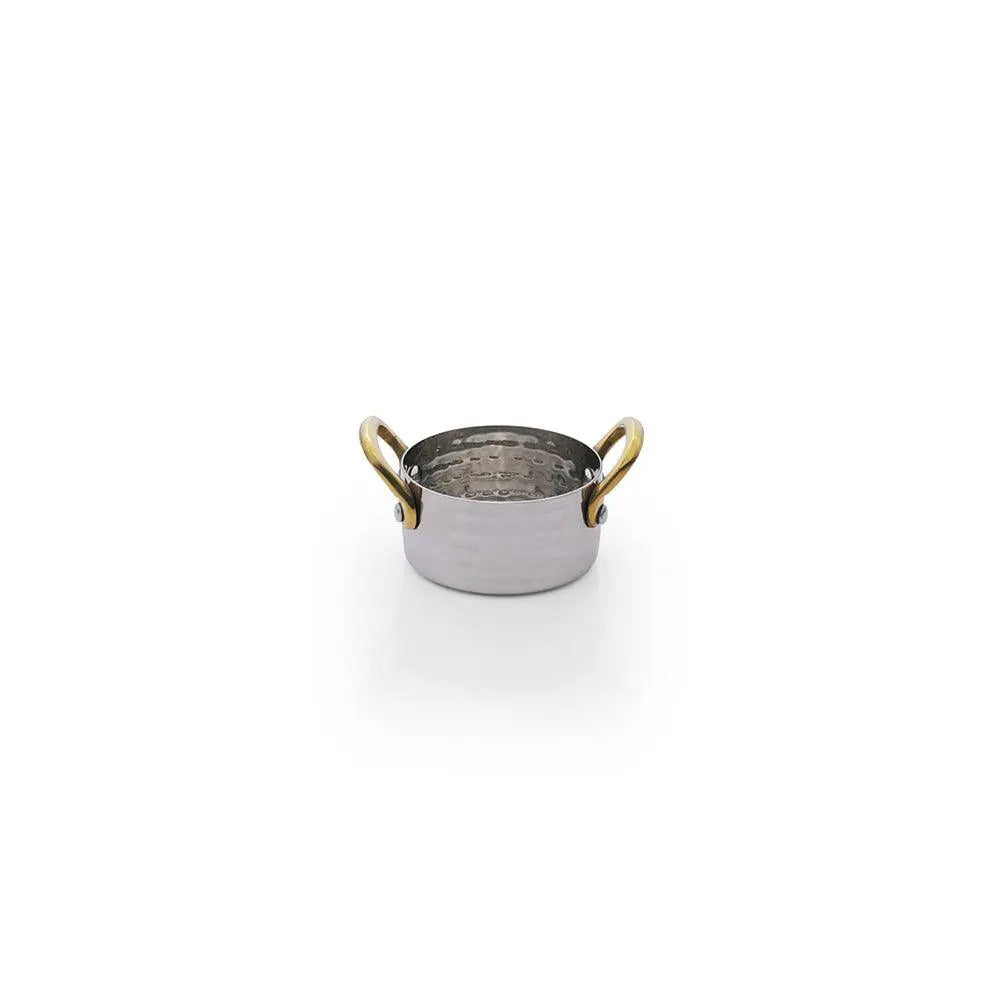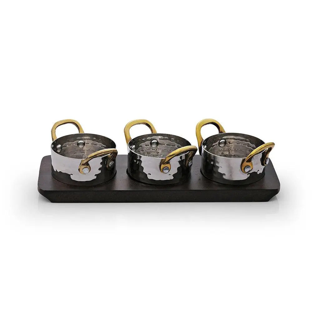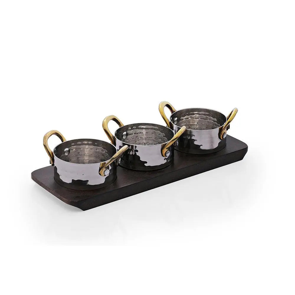 طقم 3 قدور صغيرة من الستانلس ستيل مع مقابض نحاسية وصينية خشبية المتجر هوريكا، 7 × 3.75 سم