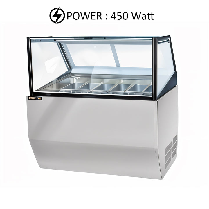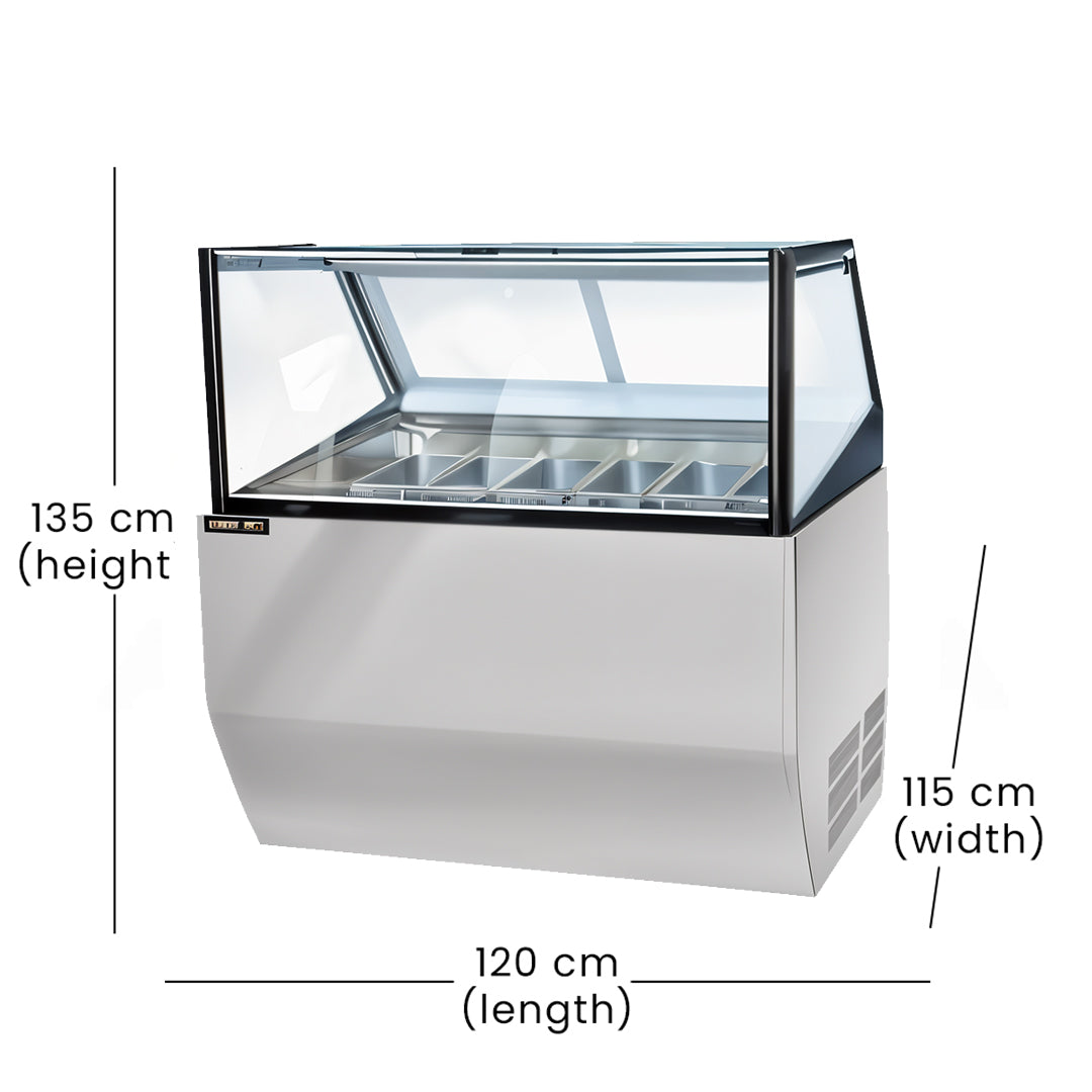 • A high-capacity ice cream display case that can hold up to 6 x 1/4 containers, perfect for ice cream shops, cafes, and restaurants.