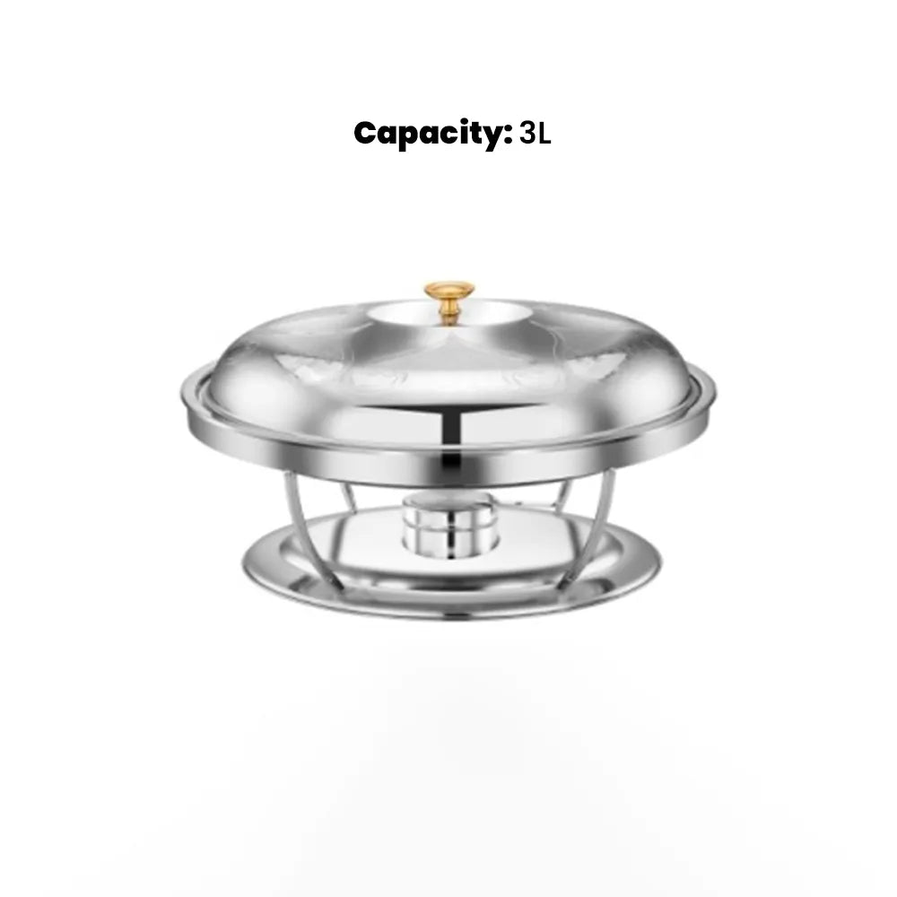 The Pradeep Ellipse Shireen Chafer in elegant silver, with dimensions of 40 cm and a holding capacity of 3.0 liters, guarantees both style and functionality for your hospitality needs. Crafted from premium stainless steel for longevity, its sleek design enhances any decor, perfect for professional settings. Boasting superior heat retention, it serves a wide array of dishes, maintaining their warmth and taste.