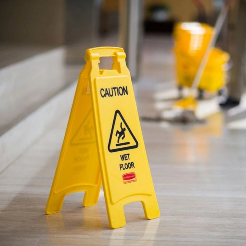 • لافتة واحدة تغطي كلا الجانبين مع رسالة "الأرضية المبللة الحذر" باللغة الإنجليزية - تضمن التواصل الفعال للمخاطر المحتملة.