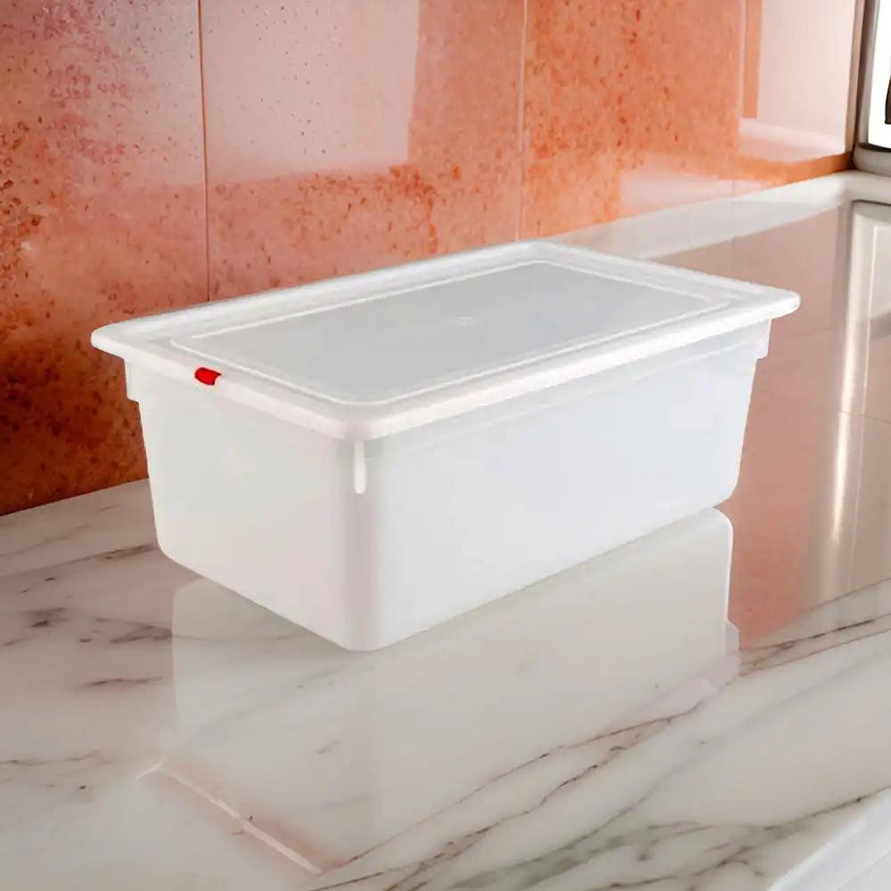 تم تصميم الحاوية البلاستيكية البيضاء من رابر بلاس تيك للمطابخ المزدحمة. يمكن أن تتحمل الاستخدام اليومي لأنها مصنوعة من مادة البولي بروبيلين المتينة. توفر مساحة لمجموعة متنوعة من المكونات بعمق 20 سم. يمكنها تحمل درجات حرارة تتراوح من التجمد إلى الغليان، وتخزين الطعام الساخن والبارد بأمان. يمكنك ترتيب عدة حاويات في مطبخك بطريقة جميلة باستخدام التصميم القابل للتكديس، مما توفر المساحة.