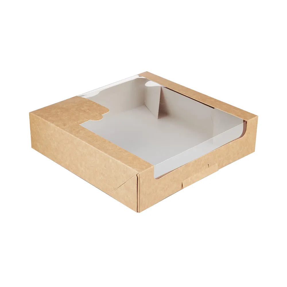 Discover the Hotpack Kraft Rectangular Deli Box with a Window, a versatile and eco-friendly packaging solution. Its natural color blends seamlessly with any setting, offering a warm and inviting look. The window feature allows for easy product visibility. Crafted with quality materials, this box is deal for displaying baked goods, confectioneries, or gifts.