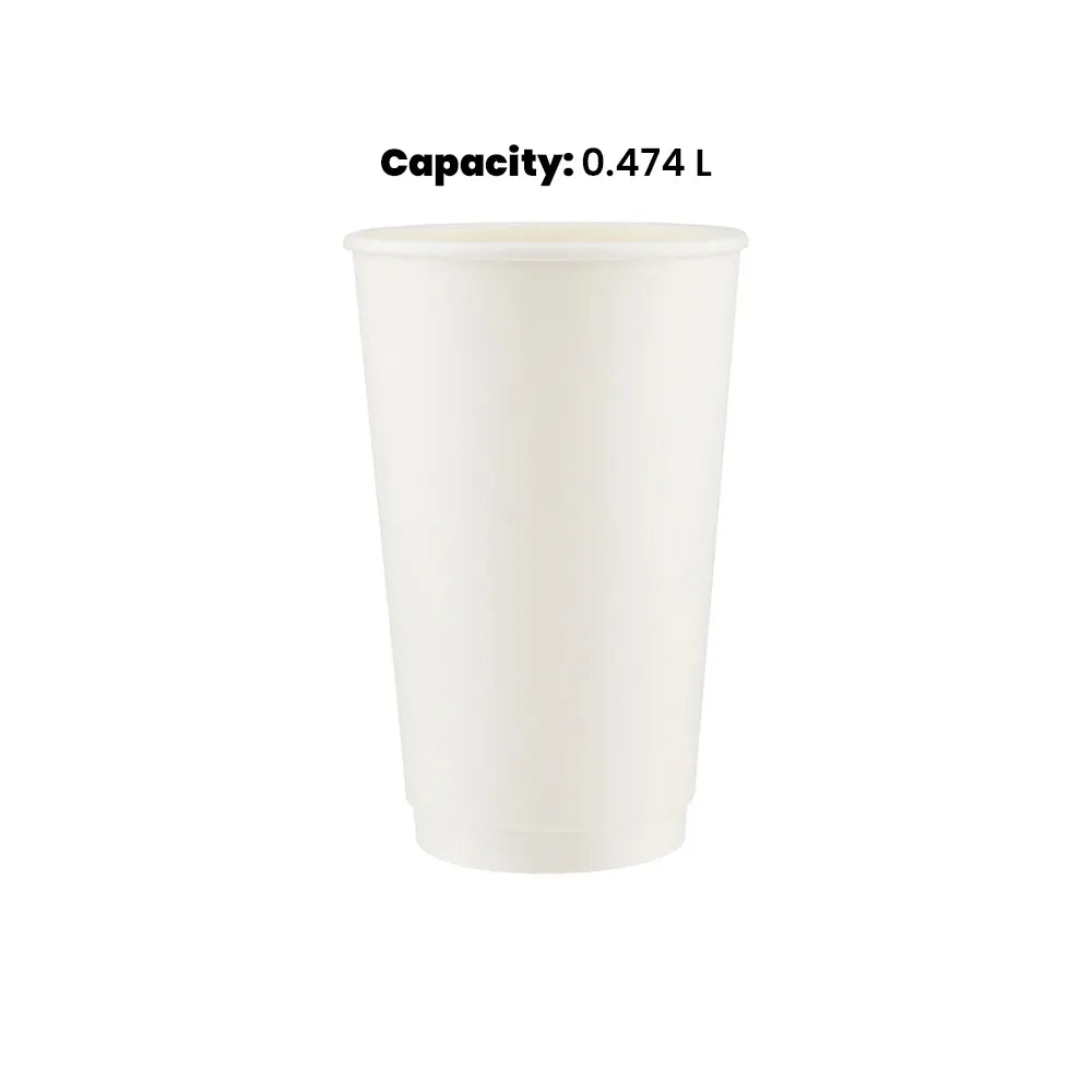 هوت باك أكواب ورقية جدار مزدوج بلون أبيض، سعة 474 مل، 500 قطعة