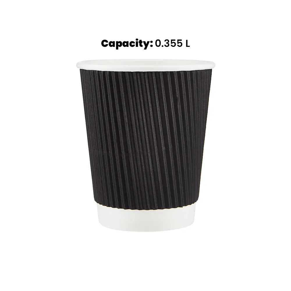 هوت باك، كوب ورقي أسود بتصميم متموج، وسعة 355 مل، 500 حبة