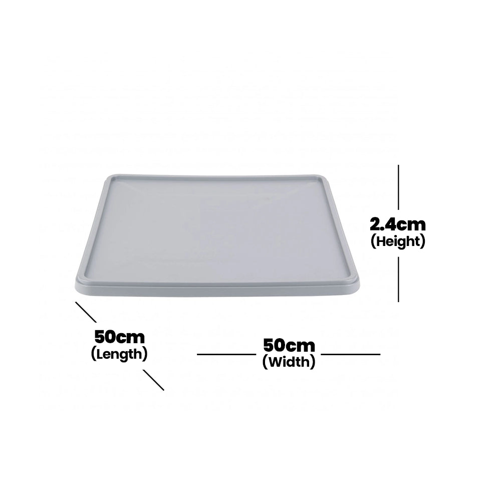 تبلغ أبعاد كل غطاء (أو 50 سم × 50 سم × 2.4 سم)، مما يجعله مناسبًا تمامًا للرفوف بحجم كامل لحمايته من الغبار والحطام والأضرار.