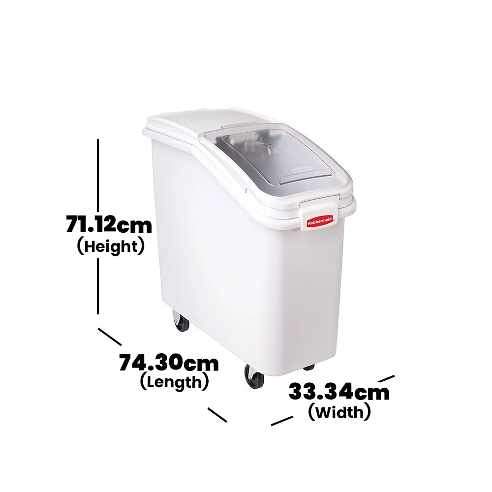 Perfectly engineered for the demanding hospitality industry, this Rubbermaid ingredient bin boasts a 79L capacity within its robust polypropylene and polycarbonate structure. Designed for ease of use, it features an interior scoop hook to diminish cross-contamination risks and casters for agile mobility. The silhouette of this bin fits snugly in tight spaces, safeguarding ingredients with a secure lid to preserve quality, making it an essential for HACCP compliance and NSF Certified.