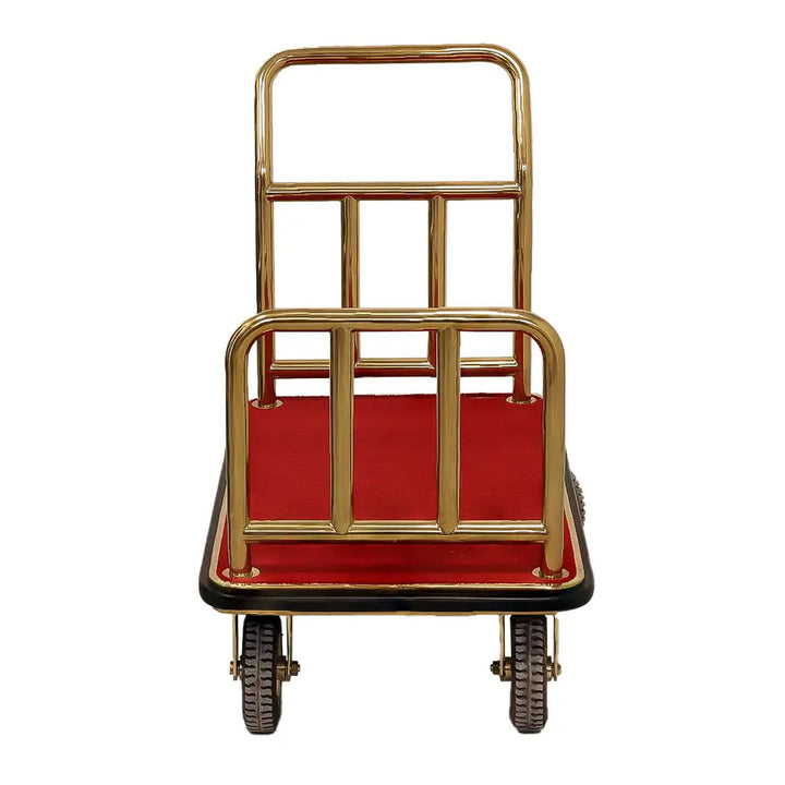 Elevate your hospitality services with the Wheelmate USA VM Platform Luggage Trolley in Gold. Crafted with precision and luxury in mind, this trolley offers ample space and durability for transporting luggage in hotel lobbies and concierge services. Its sleek gold design adds an elegant touch, enhancing the ambiance of your establishment. Impress guests with the sophistication and practicality of this premium luggage trolley.