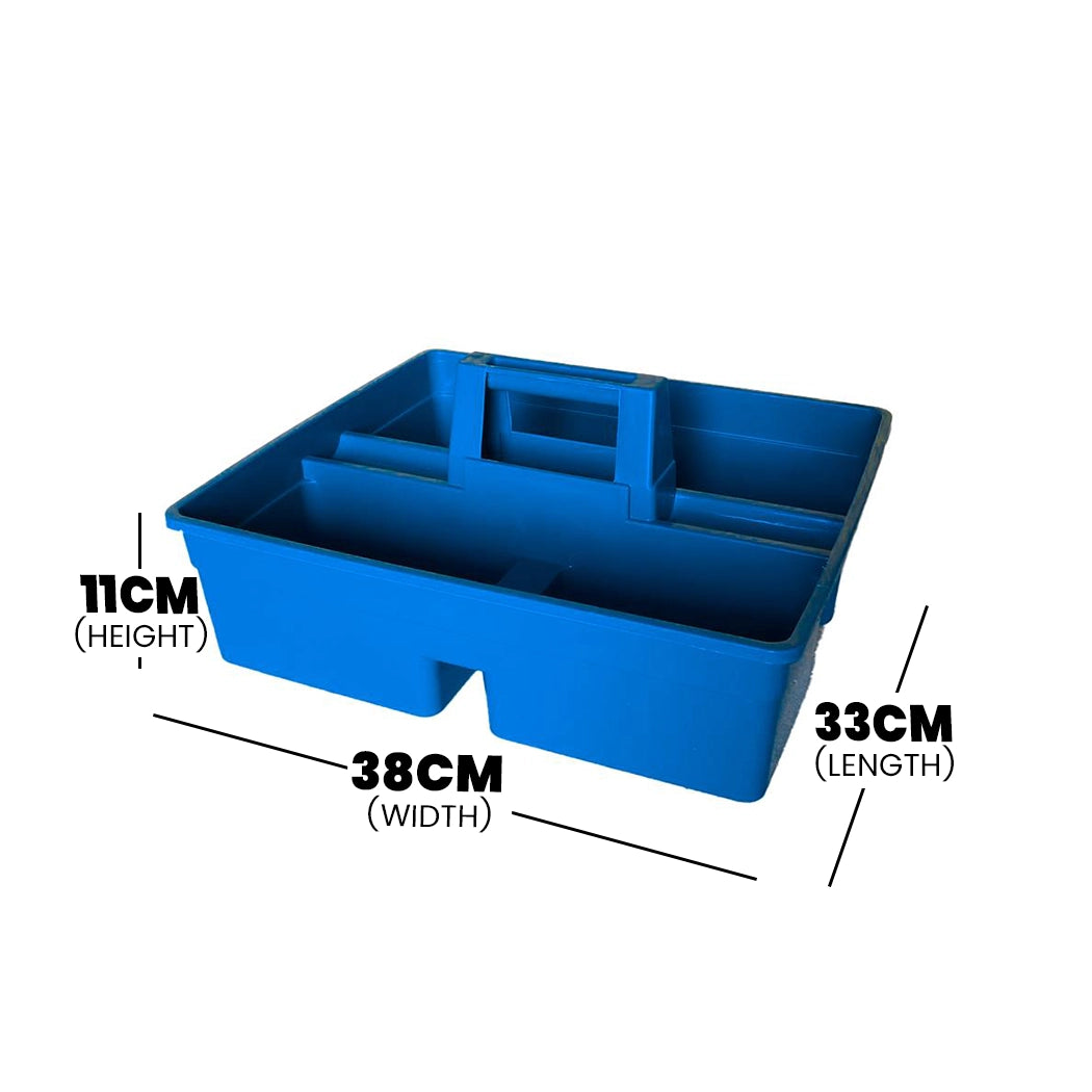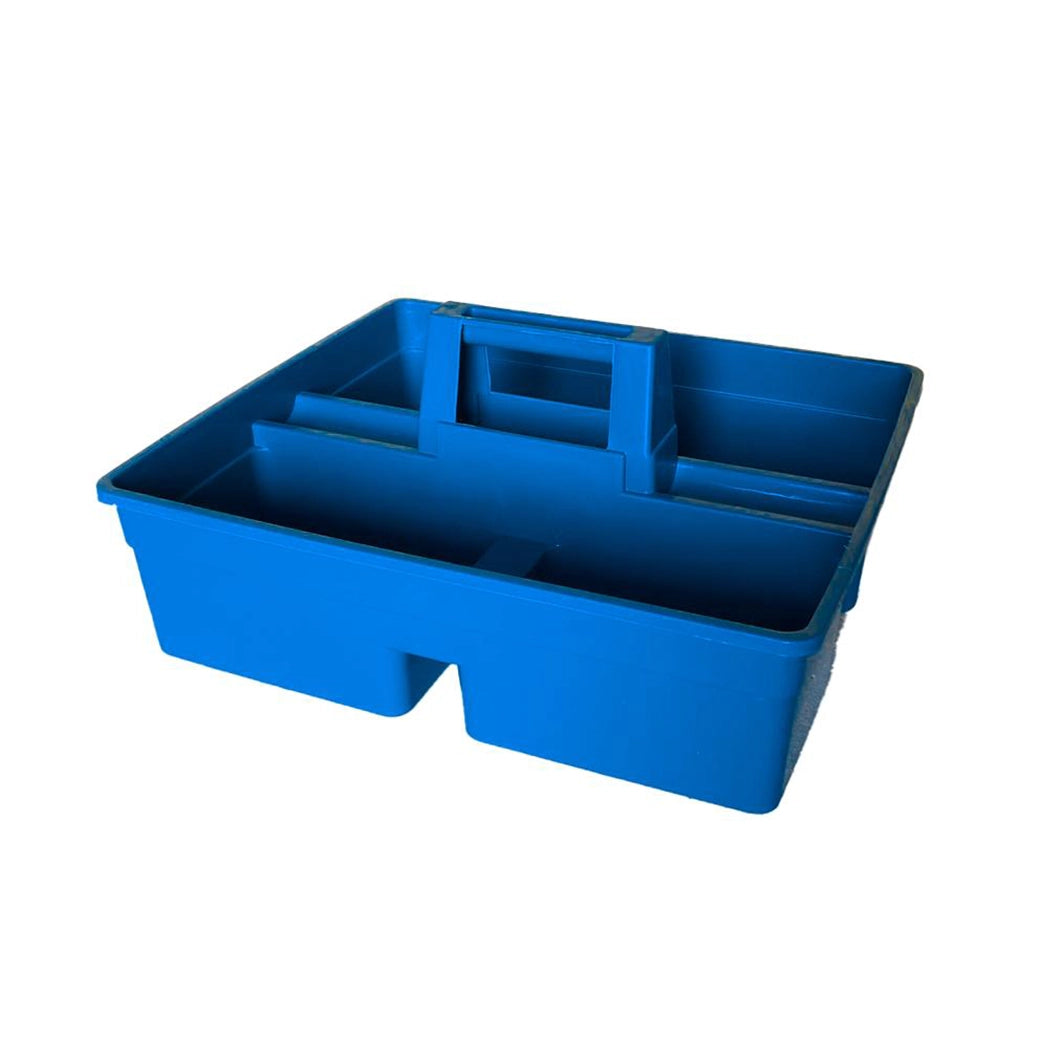 Enhance cleaning efficiency with the AKC Blue Plastic Cleaning Caddy Tray. This practical tool boasts a sturdy build, featuring one large compartment and two smaller ones for storage. Ideal for hotels, restaurants, or commercial spaces, the ergonomic handle ensures easy transport. Its vibrant blue color adds a touch of professionalism to your cleaning routine. With a set of ten pieces, achieve uniformity in multiple areas while maximizing storage efficiency.