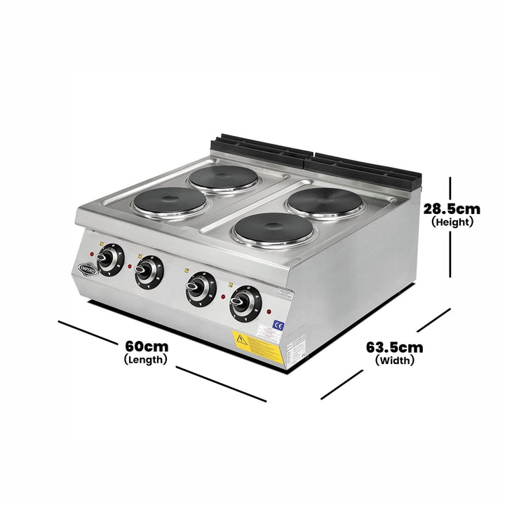 إمبيرو EMP.6KE020-2016 طباخ كهربائي 4 أطباق ساخنة، مدخل كهربائي 400 فولت تيار متردد 3N PE، 60 × 63.5 × 28.5 سم