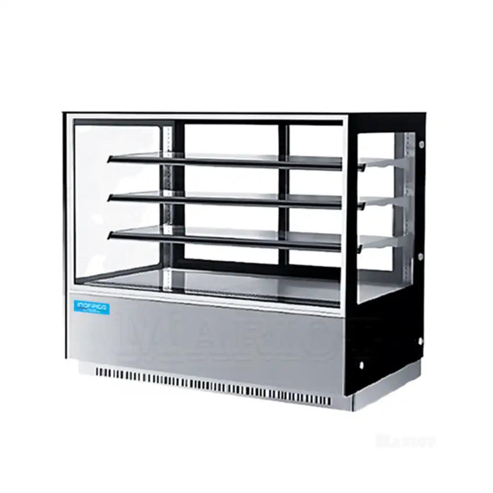 inofrigo fcs120r3m front flat glass rectangular cake display showcase with led light stainless steel black base 120 x 70 x 130 cm 3 shelves