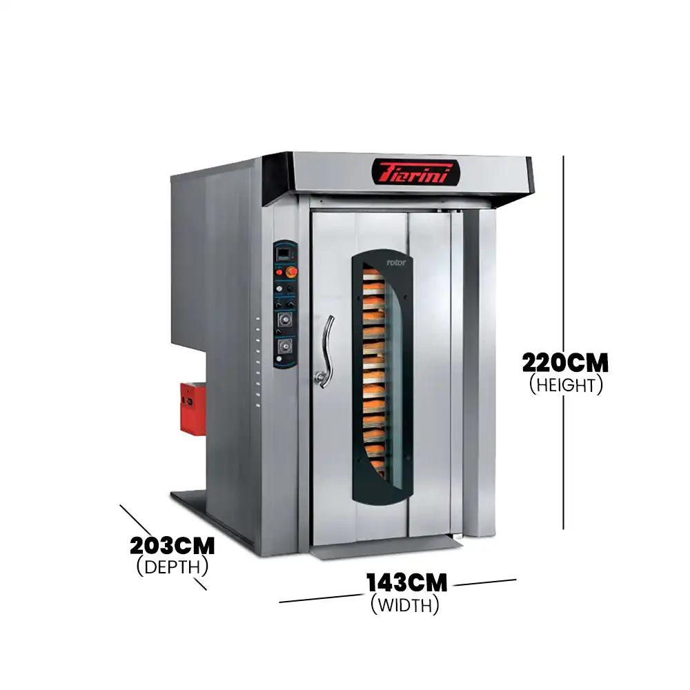 Forni Forini Rotor Gas Rack Oven, Thermal Power 240,000 BTU, 400V / 50Hz / 3 Phase, 143 x 203 x 220 cm - HorecaStore