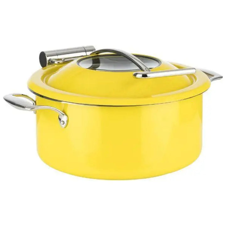 مجموعة أطباق الغضب التعريفي من Wundermaxx Lacheln مع غطاء زجاجي. تم تصميم طبق الغضب الأصفر الفاخر هذا للبوفيهات ومناسبات تقديم الطعام. يتميز بغطاء زجاجي، وغطاء وعاء داخلي، وسعة 4 لتر، مما يجعله مثاليًا لتقديم الحساء والأطباق الأخرى. ويضمن توافقها مع الحث تسخينًا سريعًا، بينما يضمن التصميم سهل التنظيف صيانة خالية من المتاعب. ارفع مستوى مناسبات تناول الطعام الخاصة بك مع حاوية حساء البوفيه الأنيقة والفعالة.