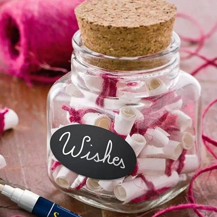 ارفع مستوى التنظيم باستخدام ملصقات السبورة Securit® المقاومة للماء - مجموعة مكونة من 8 ملصقات بيضاوية ذاتية اللصق. من Wundermaxx ألمانيا، تعمل هذه الملصقات متعددة الاستخدامات والمقاومة للماء على تحسين برطمانات المطبخ وحاويات التوابل والمزيد بشكل أنيق. تتميز بأسطح صديقة للطباشير، فهي تجمع بين التطبيق العملي والأناقة لتنظيم سهل.