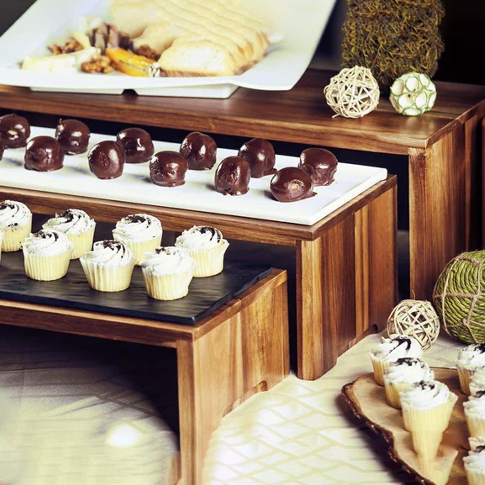 Tablecraft RACA300 Acacia Cascade Riser, Set of 3 - HorecaStore
