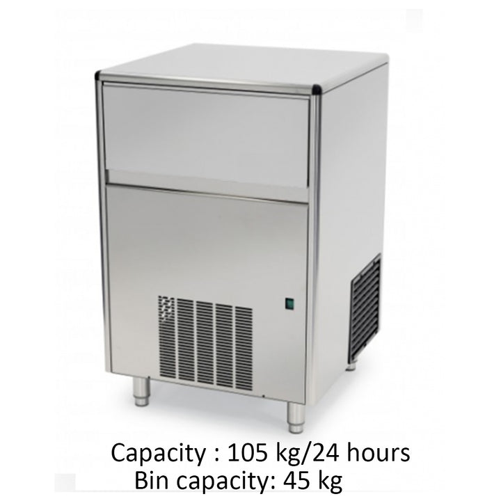 • Features a spacious 45kg bin storage capacity and produces cube ice weighing 22g each.