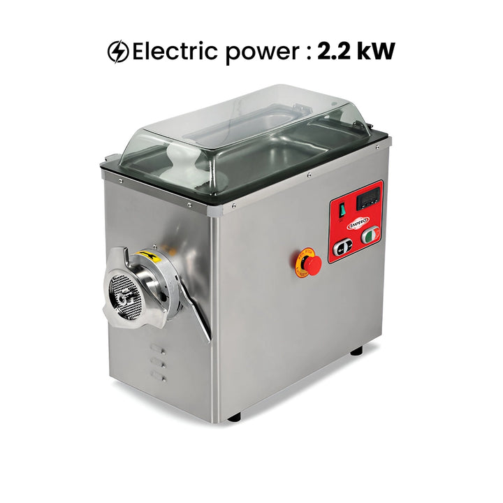 • Powered by a 2.2 kW motor with 1500 rpm and 380V, ensuring efficient mincing.