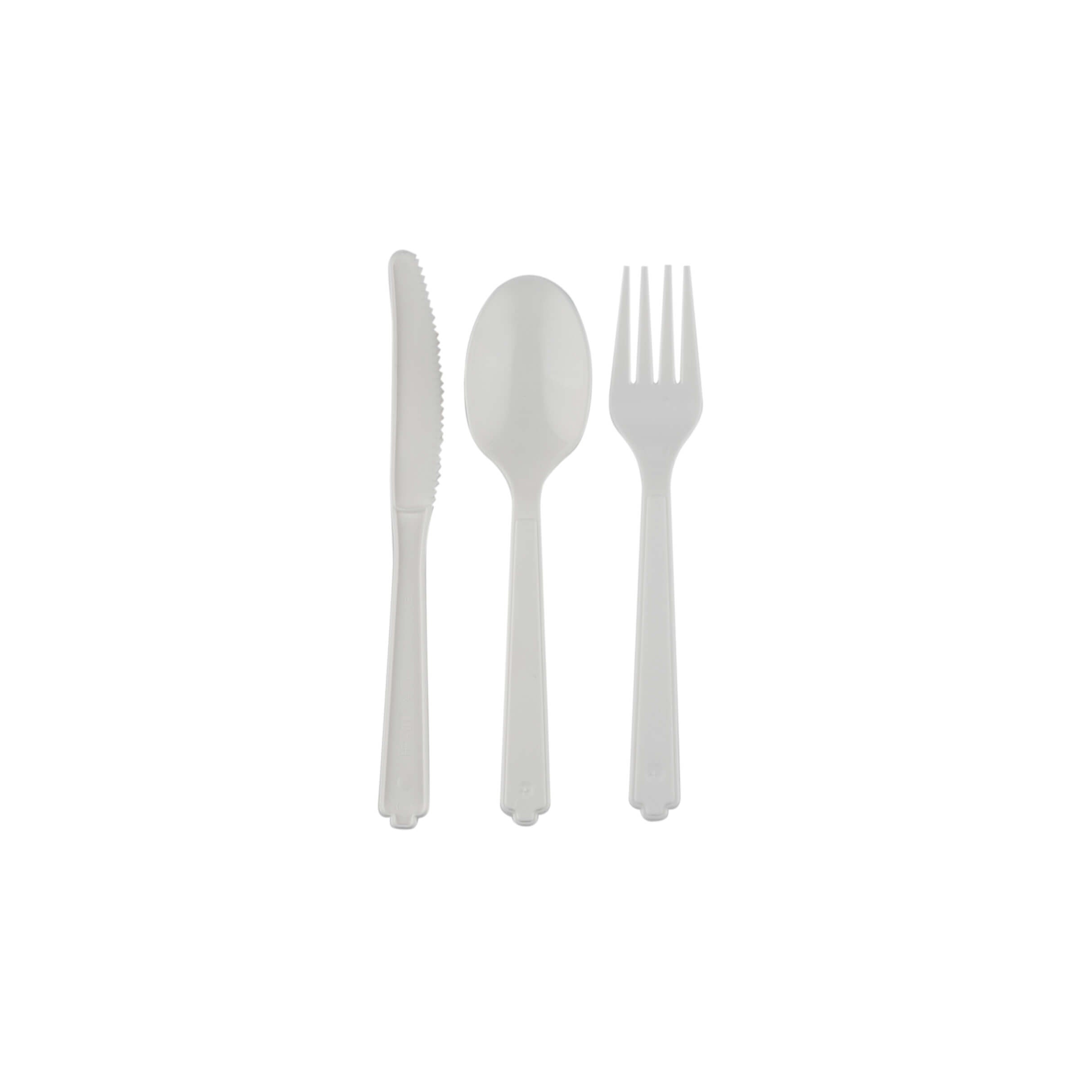 مجموعة أدوات مائدة بيضاء متوسطة التحمل من هوت باك PP مكونة من ملعقة + شوكة + سكين، 400 قطعة