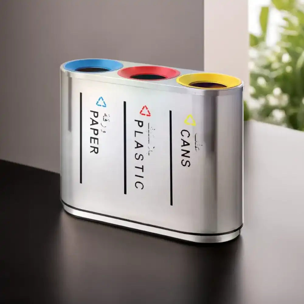هوريكاستور HS-101، سلة المهملات لإعادة التدوير بـ 3 مقصورات، مصنوعة من الفولاذ المقاوم للصدأ