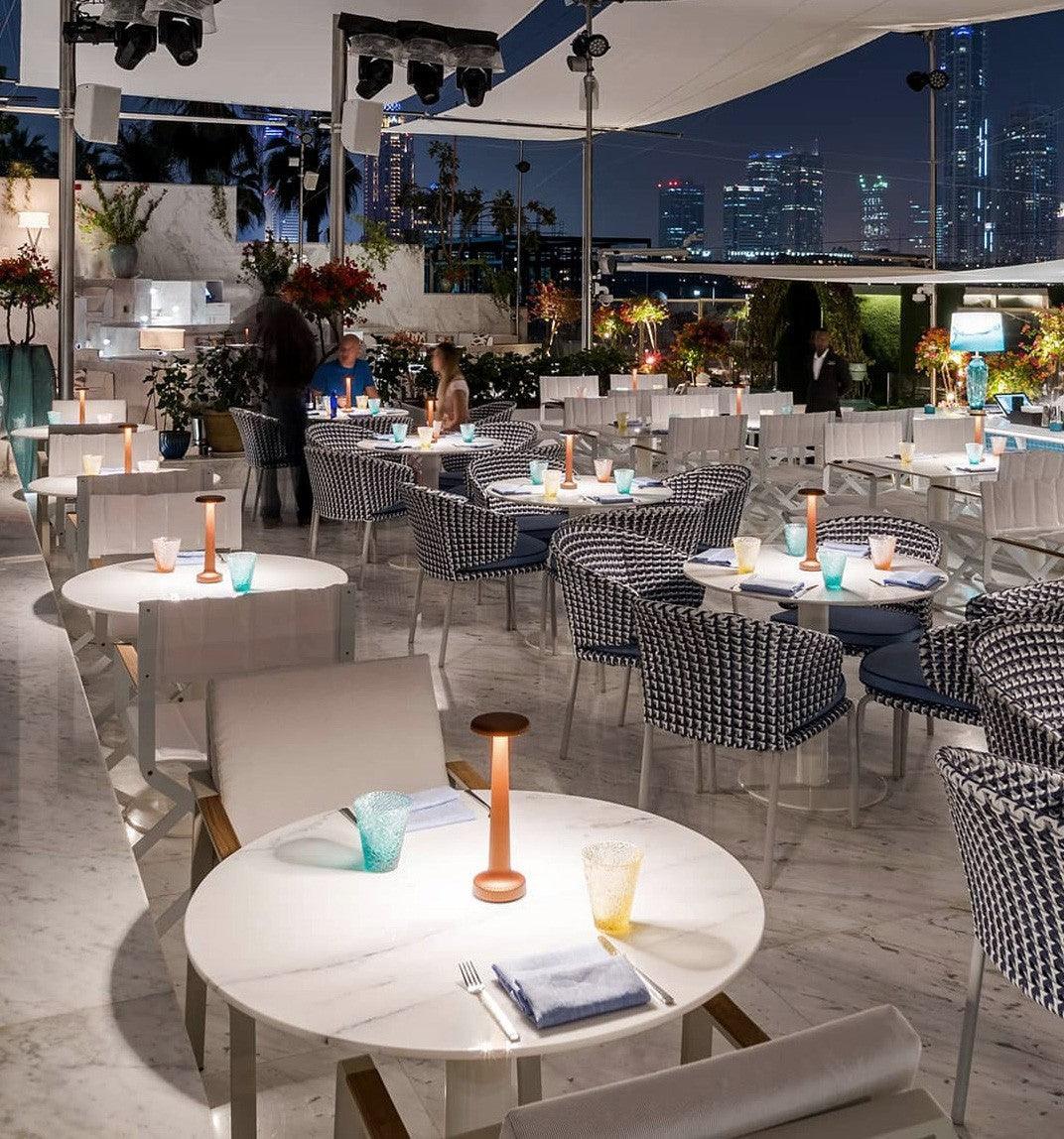 قم بإضاءة مساحتك بأناقة باستخدام مصباح الطاولة اللاسلكي القابل لإعادة الشحن من نيوز. يضيف تصميم Tall Poppy الأنيق الأناقة إلى الحانات والمطاعم وغرف النوم على حدٍ سواء. استمتع بالراحة اللاسلكية والإضاءة الدافئة والبطارية القابلة لإعادة الشحن. مع لمسة نهائية من الساتان الأسود، يكمل هذا المصباح أي ديكور. ارفع مستوى أجواءك مع المزيج المثالي بين الوظيفة والجماليات. متوفر على HorecaStore.ae.