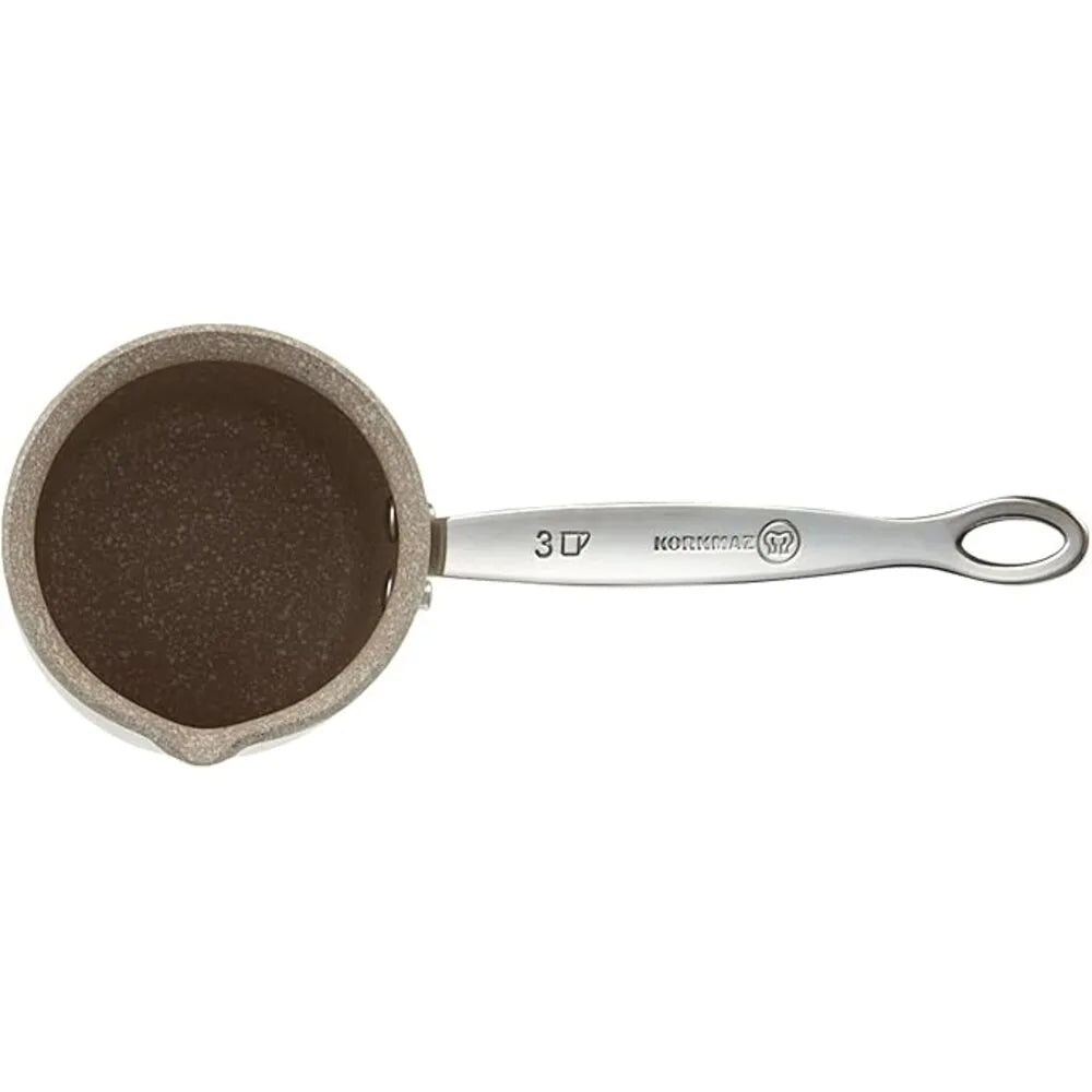 The Korkmaz Granita Coffee Pot in beige is a versatile addition to any kitchen, featuring a nonstick coating for easy cleaning and a 500 ml capacity, ideal for making 2 cups of coffee or warming milk. Its stainless-steel handles ensure a secure and comfortable grip, while the compact dimensions of 10 cm x 10 cm x 35 cm make it well-suited for both home and hospitality environments. This coffee pot combines functionality with durability, providing an efficient brewing experience.