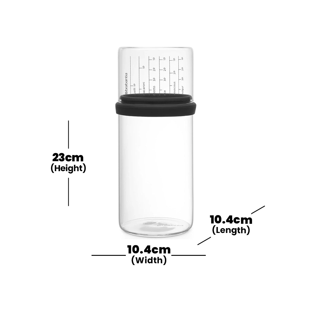 Brabantia Storage Glass Jar With Measuring Cup, 1L, Dark Grey