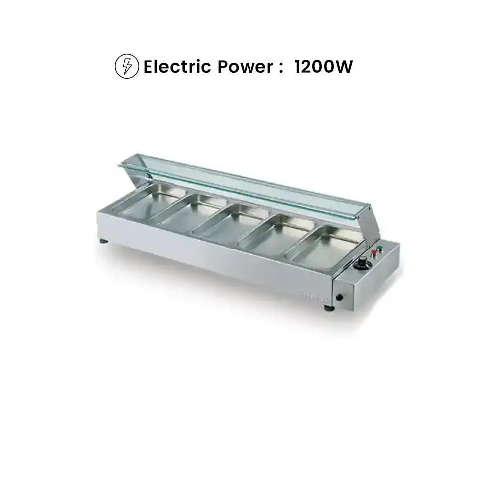 عداد برجايا BMC5 الكهربائي الصغير باين مارين 5 صواني جي-أين بدون غطاء، قوة 1200 وات