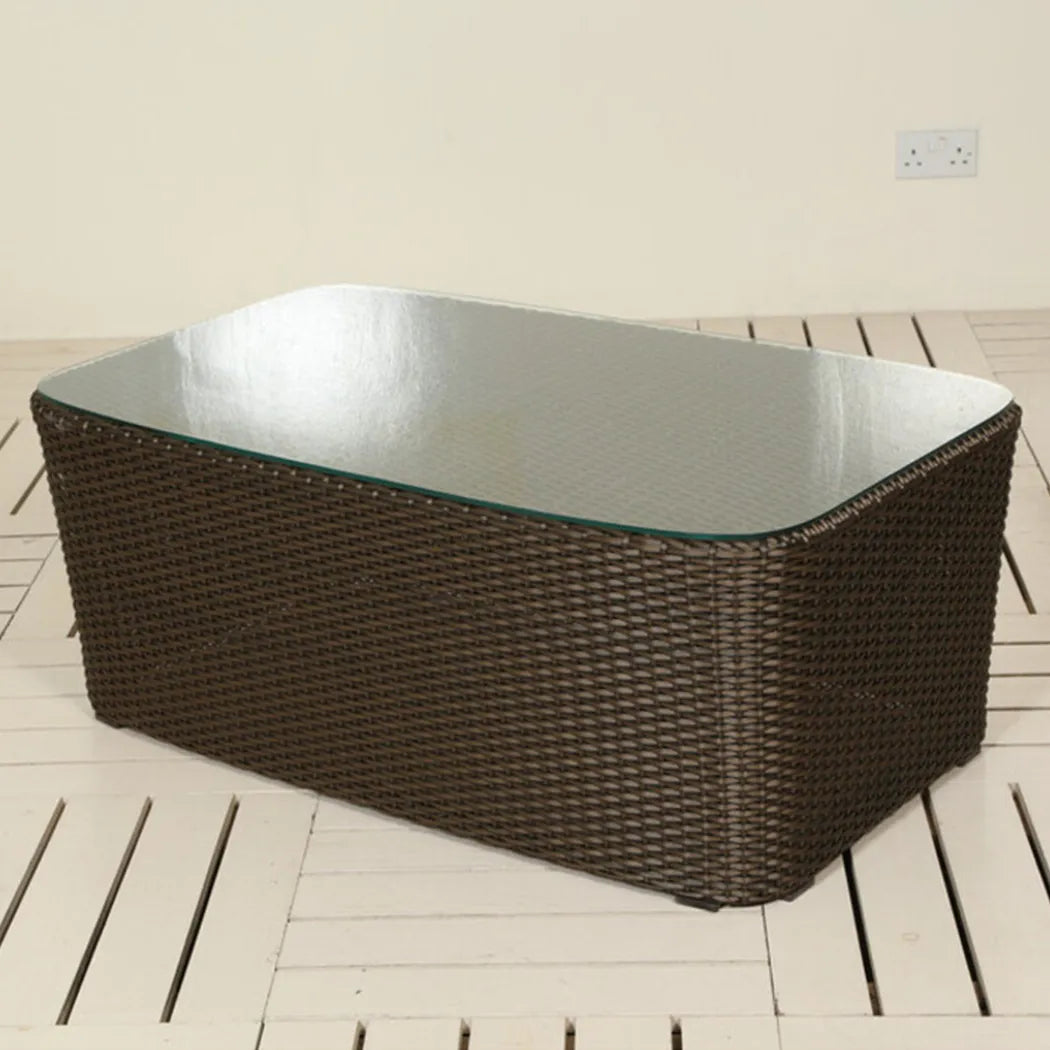 This Ambar Grenada Coffee Table has a minimalist design that fits any home style. It's available in various colors to match your decor. The powder-coated aluminum frame and weather-resistant fabric make it perfect for indoor or outdoor use. It's durable, resistant to rusting and scratching, and easy to maintain. This coffee table adds a touch of elegance to your home, making it a great addition to your living room.