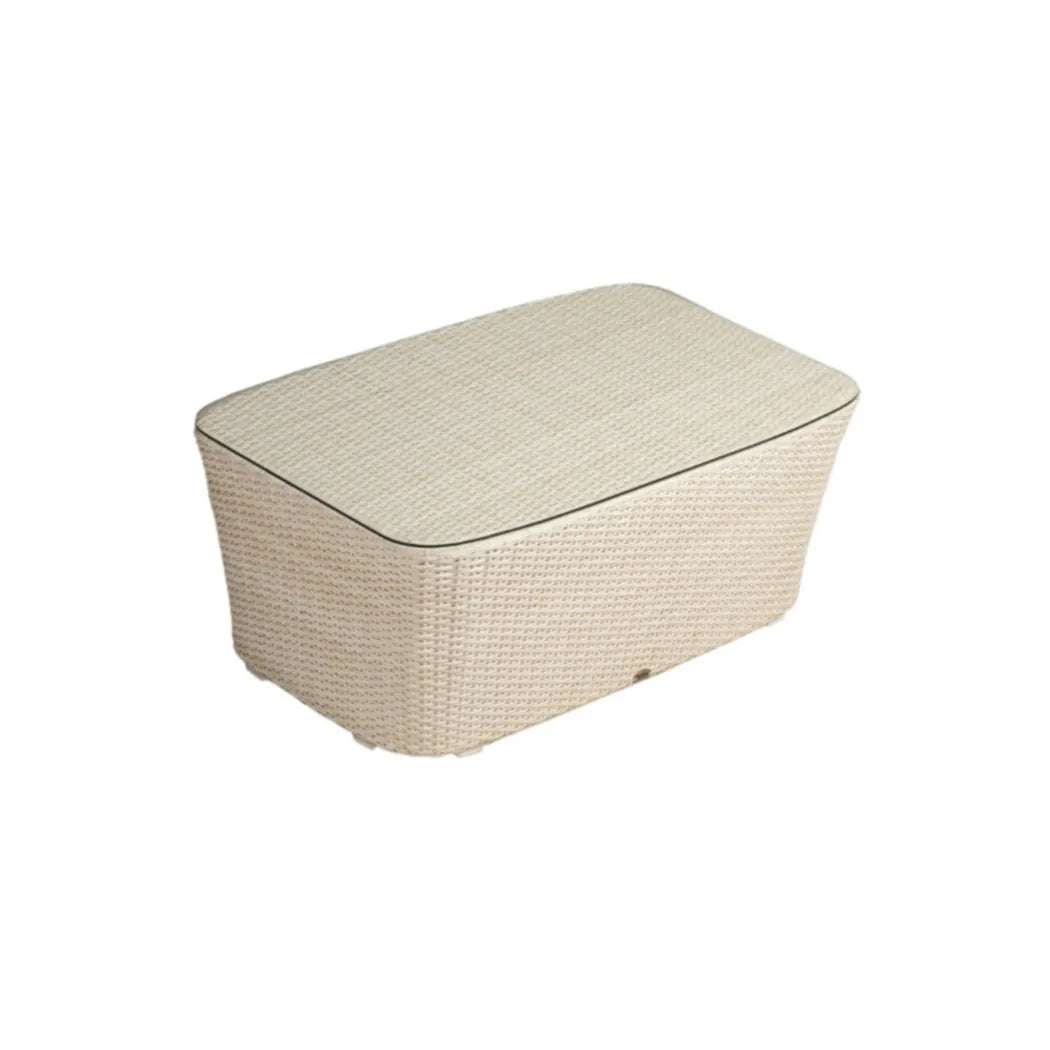 This Ambar Grenada Coffee Table has a minimalist design that fits any home style. It's available in various colors to match your decor. The powder-coated aluminum frame and weather-resistant fabric make it perfect for indoor or outdoor use. It's durable, resistant to rusting and scratching, and easy to maintain. This coffee table adds a touch of elegance to your home, making it a great addition to your living room.