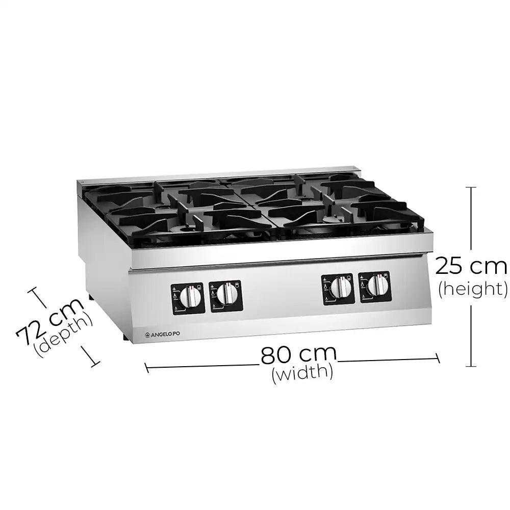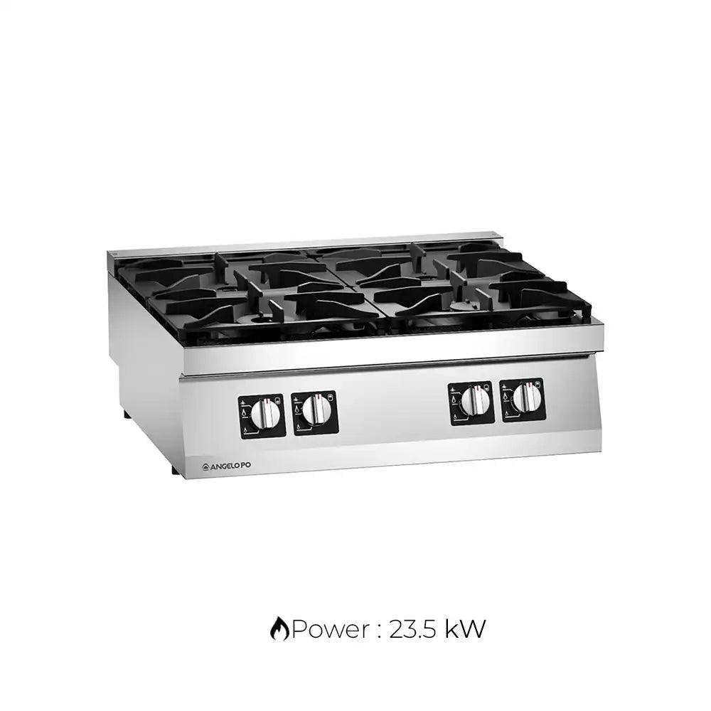 Angelo 1S0FA0 Gas Cooking Range 4 Burners, Gas Power 23.5 kW, 80 X 72 X 25 cm - HorecaStore
