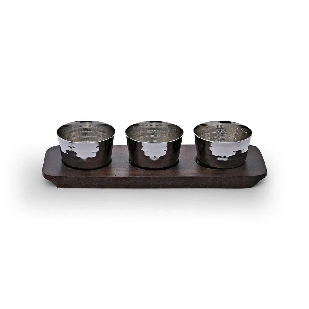 أوعية مخروطية الشكل مصنوعة من ستانلس ستيل، مع لوح خشبي، مجموعة 3 قطع، بمقاس 6.5 سم