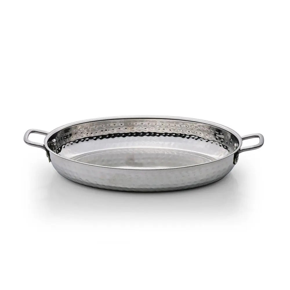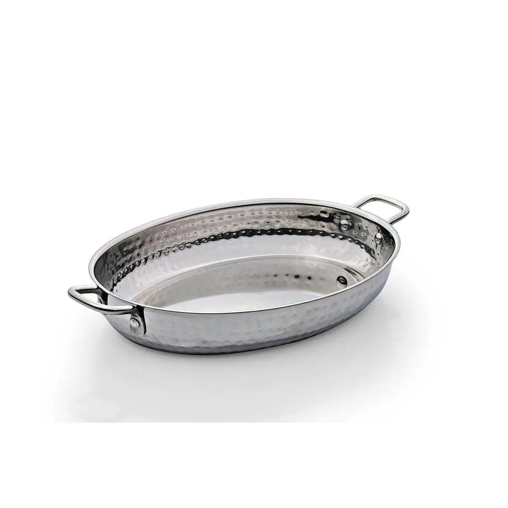 مقلاة بيضاوي الشكل بلمسة نهائية مطروقة مصنوعة من ستانلس ستيل، بمقاس 25 × 18 × 0.75 سم، سعة 1 لتر