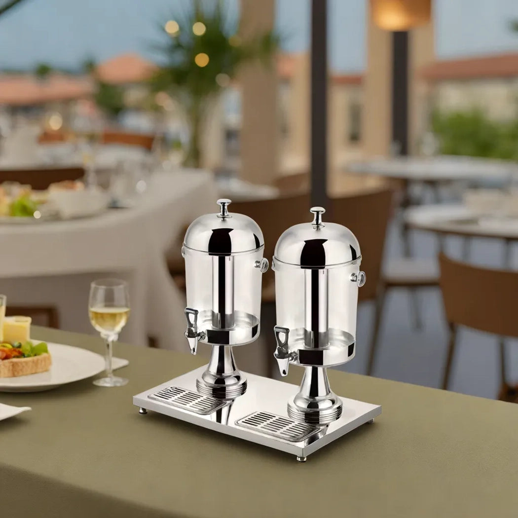 يتميز موزع العصير المصنوع من الألياف المعدنية بتصميم عصري من الفولاذ المقاوم للصدأ مع أوعية مزدوجة السعة، وهو مثالي للفنادق والمطاعم. فهو يبرد المشروبات بكفاءة ويتضمن أغطية للنظافة. لمسة نهائية فضية أنيقة تكمل أي إعداد، وتوفر حلاً أنيقًا وعمليًا لتقديم المشروبات الباردة في البوفيهات والمناسبات.