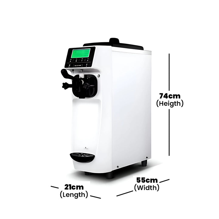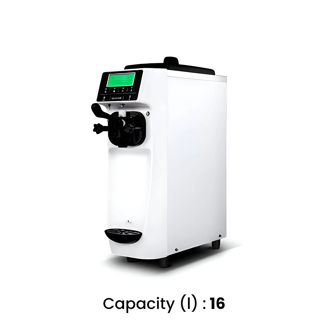 The Gelato Soft Ice Cream Machine is a compact ice cream machine designed for small businesses or personal use, producing 16 liters per hour. It features a powerful compressor, stainless steel hopper, and gear motor for efficient and quiet operation. Made by Gelato Brand and assembled in China, it's a great option for those seeking a reliable and efficient soft ice cream machine.