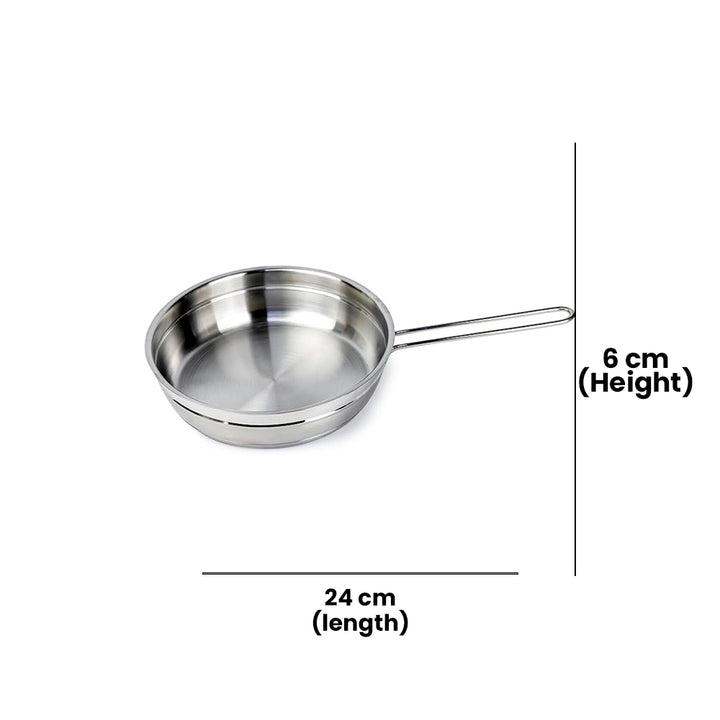 Korkmaz Astra Stainless Steel Frypan offers durable cooking performance with its stainless steel construction, ensuring long-lasting hygiene and reliability in the kitchen. Its triplex heavy-bonded capsule bottom ensures efficient heat distribution, while the high-polished exterior surfaces add an attractive touch to your cooking space. The frypan features stainless steel handles and knobs with a stylish matte finish, providing comfortable handling and enhancing its aesthetic appeal. With a generous capacity of 2.7 liters and compatibility with gas stovetops, this frypan is ideal for a variety of cooking tasks, promising durability and functionality for everyday culinary needs.