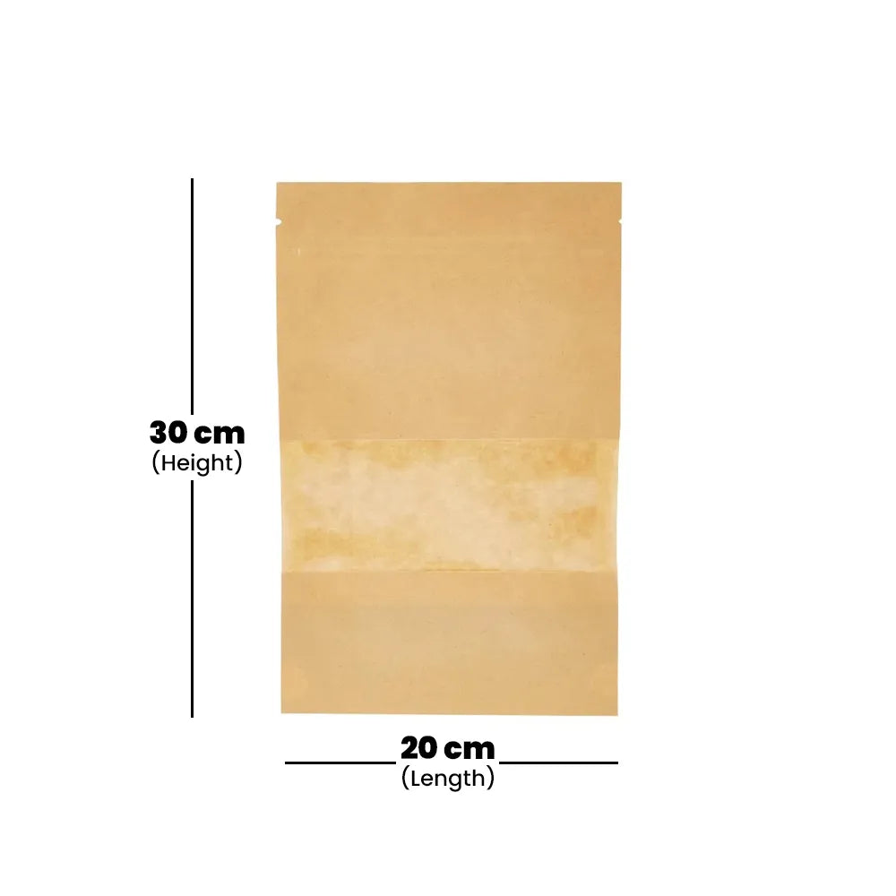 Hotpack Kraft Stand Pouch with Window, 20 x 30 x 5 cm, 500 PCs