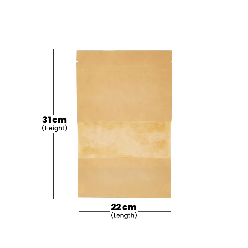 Hotpack Kraft Stand Pouch with Window, 22 x 31 x 5 cm, 500 PCs