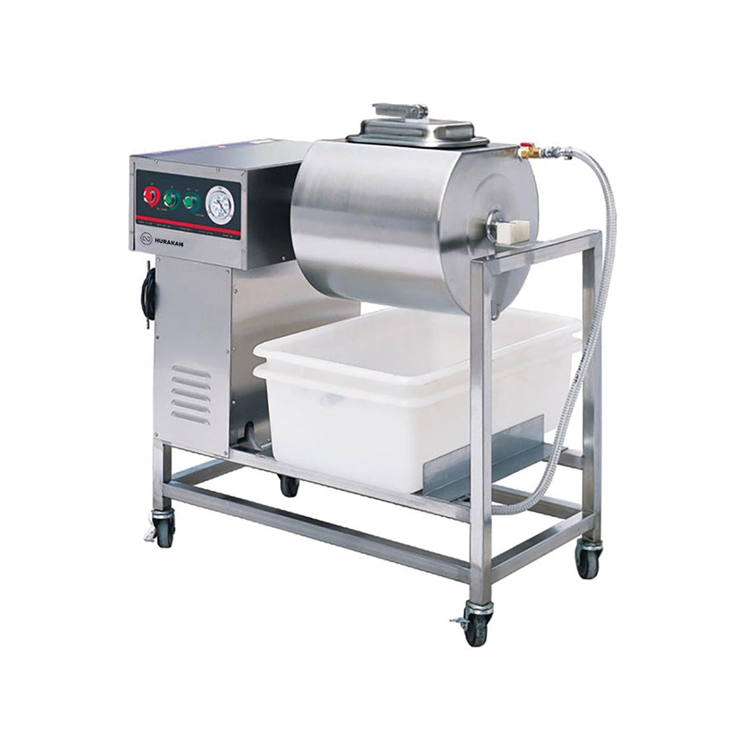 The Hurakan HKN-SP50VAC/GP is a stainless steel vacuum meat marinator specifically developed for hotel and restaurant kitchens. With dimensions of 41cm (L) x 90cm (W) x 94cm (H) and a power of 0.2 kW, it effectively marinates meat, boosting flavor and tenderness quickly, making it ideal for hectic kitchen situations.