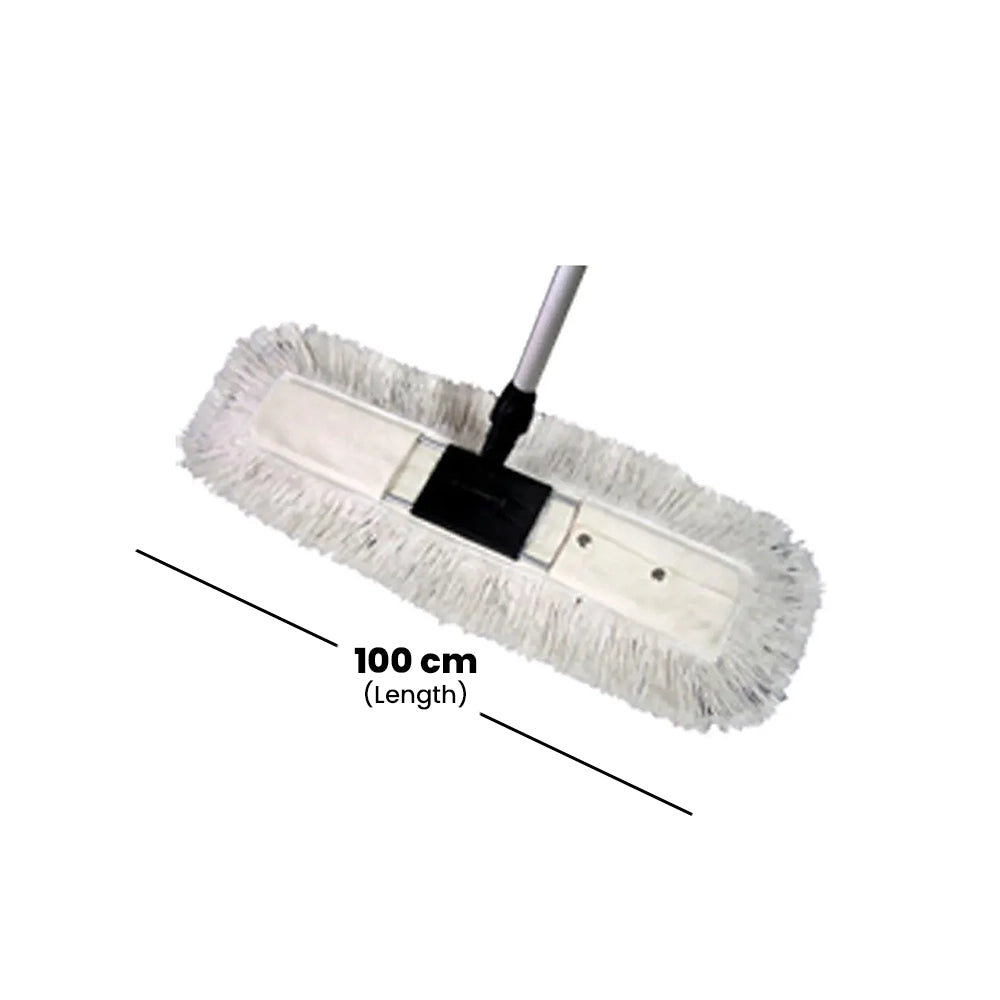 Introducing our Dust Mop Set 100CM (White) with Aluminium Handle, designed for efficient dusting in hospitality environments. The abundant cotton fibers attract dust effectively, including hard-to-reach areas like ceiling fans. The ergonomically designed handle with a hang-up feature ensures convenient storage. Perfect for cleaning hardwood floors, the swivel head reaches tight spots effortlessly. With a durable aluminium handle, this mop set is a reliable and essential tool for hotels, restaurants, and cafes.