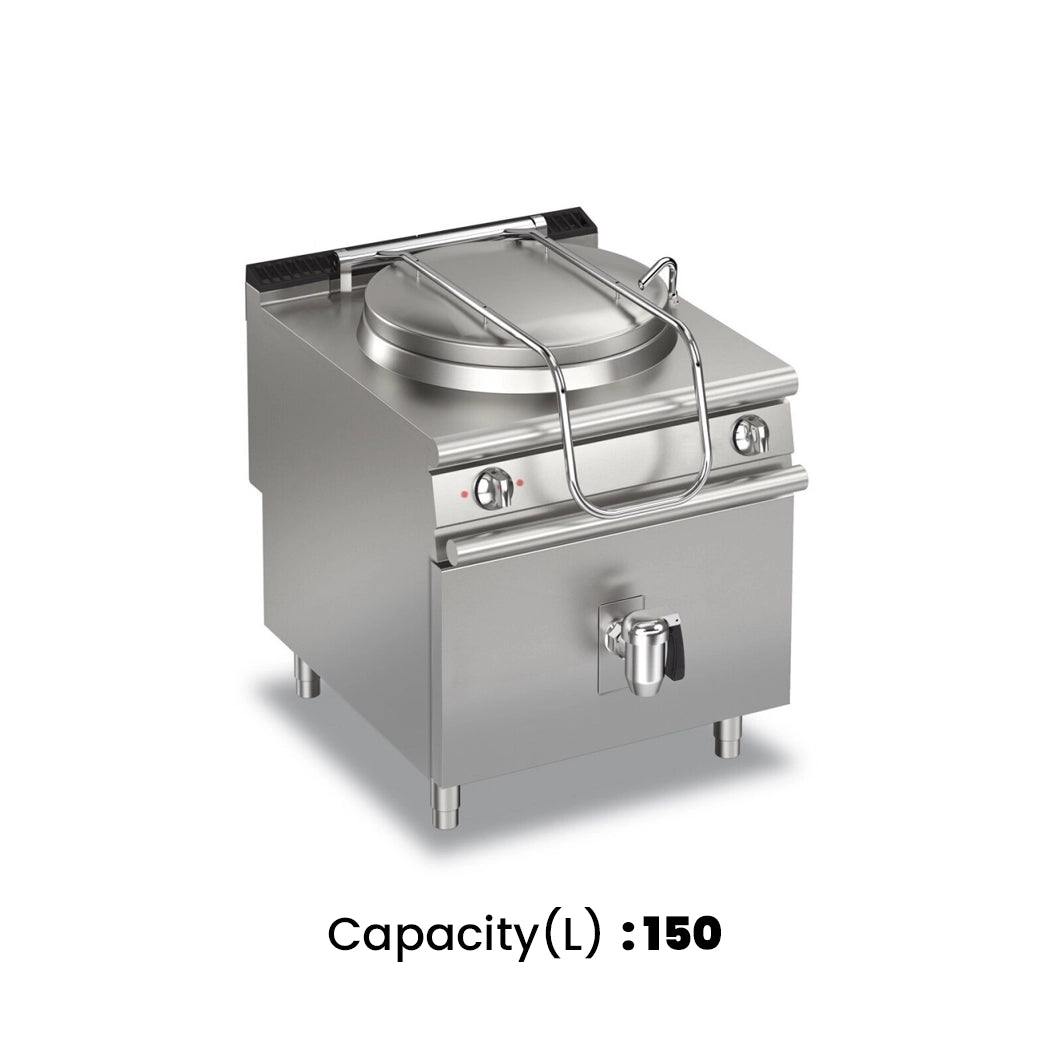 • 150L capacity tank for large-scale cooking and heating, with electric power: 12 kW.