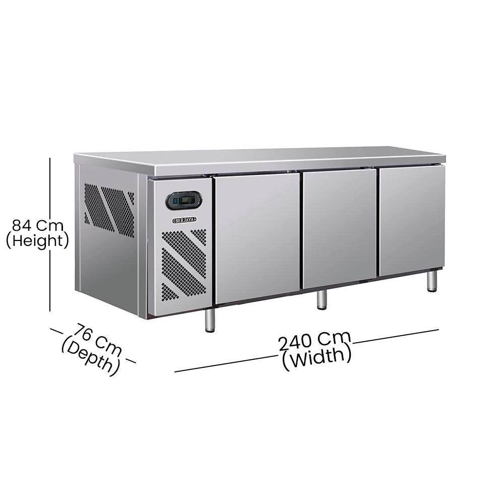 برجايا BS2DC8/Z مبرد كهربائي 3 أبواب أسفل الطاولة مع 6 أرفف 681 لتر، الطاقة 618-682 وات، 240 × 76 × 84 سم