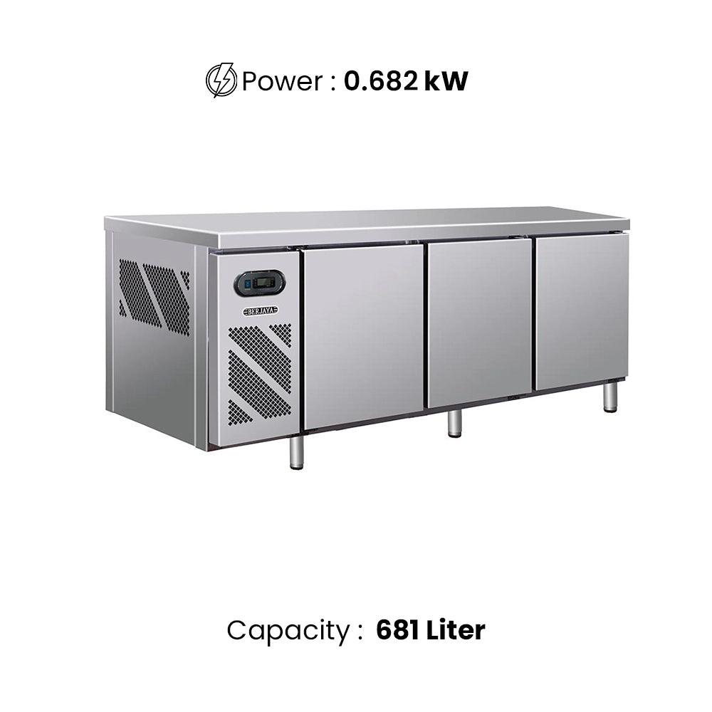 Berjaya BS2DC8/Z Electric 3 Door Under Counter Chiller With 6 Shelves 681L, Power 618-682W, 240 × 76 × 84 cm - HorecaStore