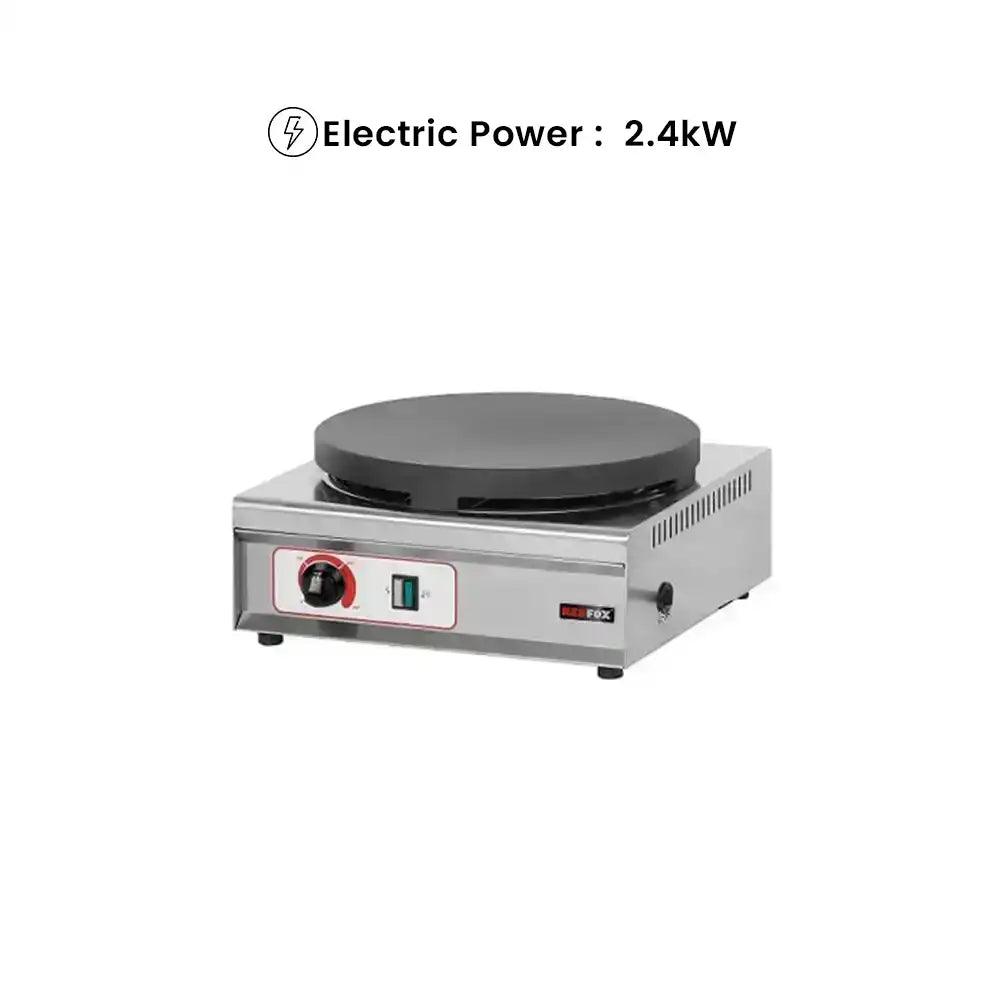 • مجهزة بنظام كهربائي بقدرة 2.4 كيلو واط للتسخين السريع والفعال، مما يسمح بتحضير الكريب بسرعة.