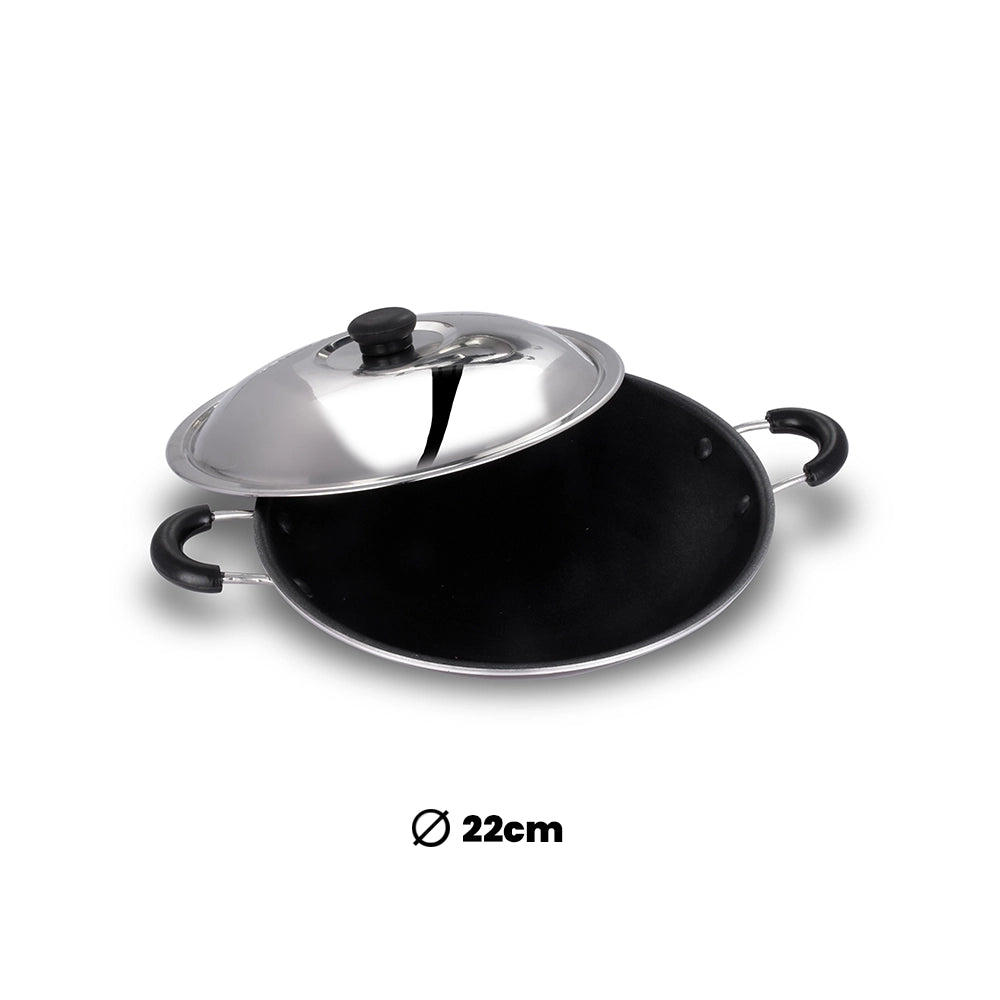 آرك، مقلاة أباتشاتي غير لاصق من ألومنيوم بغطاء من القولاذ المقاوم للصدأ، 22 سم