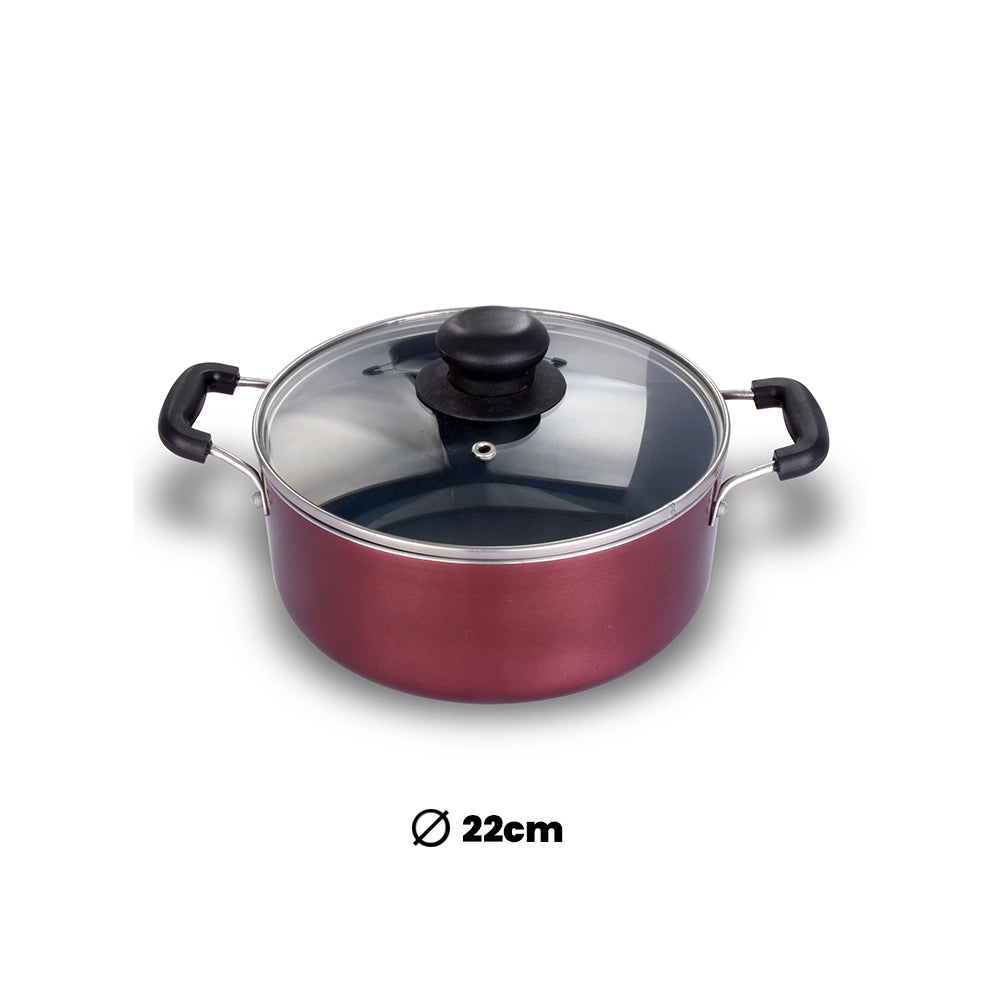آرك، قدر كسرولة تحريضي وغير قابل للالتصاق مع غطاء زجاجي، مصنوع من ألومنيوم، 22 سم