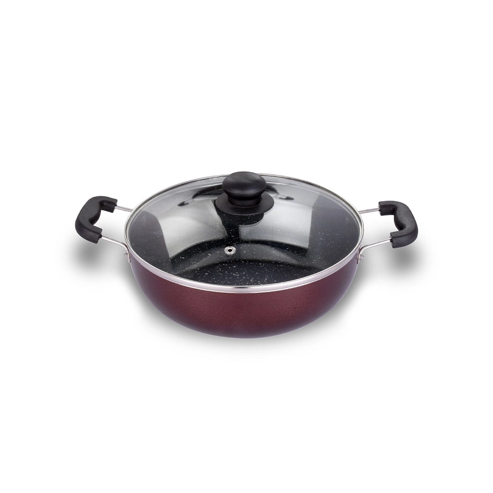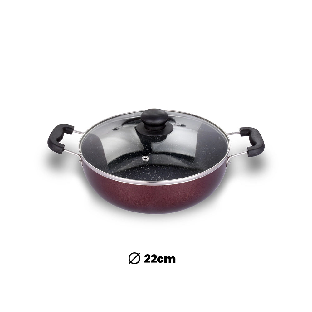 كراهي المتميز المطلي بالألمنيوم والرخام غير القابل للالتصاق والتحريضي مع غطاء زجاجي مناسب للفنادق والمطاعم. إنه مصمم للطهي اليومي ويوفر طعمًا رائعًا ومرونة. إنه مناسب لمجموعة متنوعة من مصادر الحرارة، بما في ذلك مواقد الحث الحراري والغاز والكهرباء والسيراميك، مما يجعل عمليات المطبخ أكثر كفاءة. إنه آمن للاستخدام في غسالة الأطباق ويأتي بحجم 22 سم، مما يجعله مثالياً للمطابخ الاحترافية.