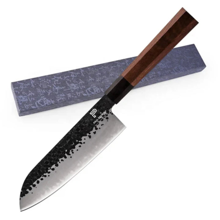 سكين شيف ديلوكس من الفولاذ الكربوني وحافة مقاومة للتآكل فائقة الحدة مع مقبض خشبي، 7 بوصة